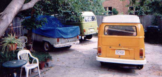 What our backyard looked like for a few months last year: A '76 Westy, a '78 Westy, and a '78 Double Cab.