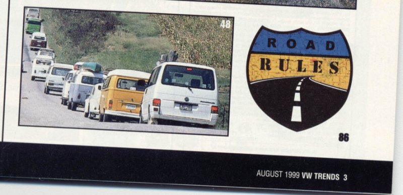 OOOOH! Daisy is famous! Here she is in the August 1999 VW Trends Magazine. Can you spot her? It's a picture from Busses by the Arch #14. More pictures from BBTA #14 under the Events section.