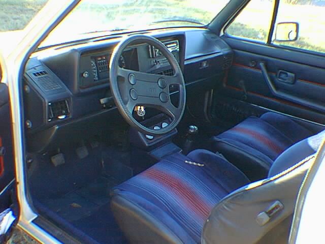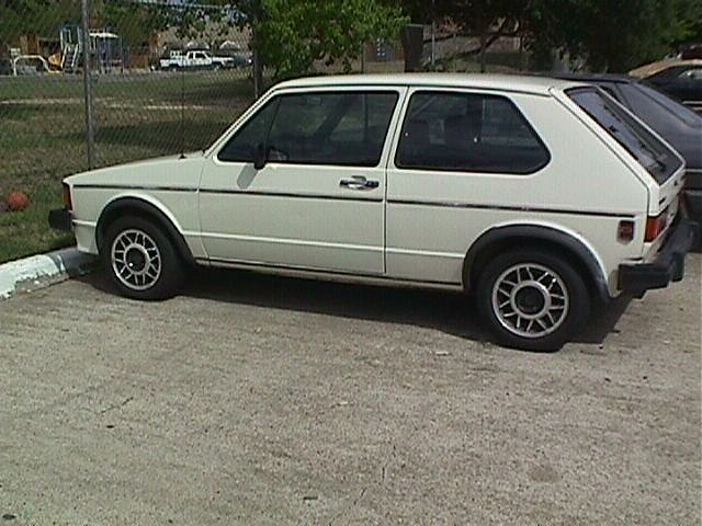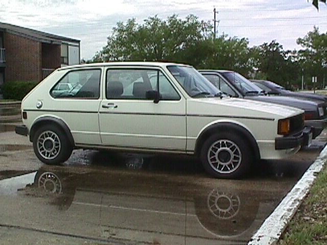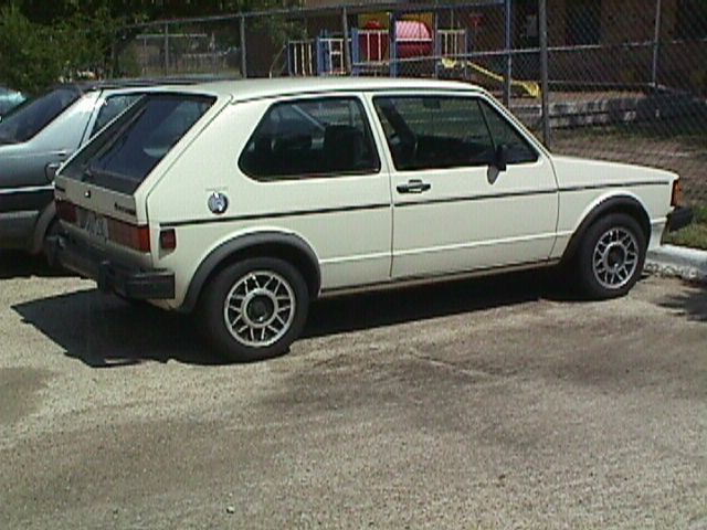 The previous owner had her for about a year, and had taken steps to restore her to her former glory: He replaced the dash, had the non-working speedometer rebuilt and had the front seats recovered in original material. He also put new Pirelli's on the stock GTI wheels. When he had purchased the car, it needed a new transmission, so he found and installed the correct, close-ratio transmission. The only major problem that he never got around to fixing was the "gas tank problem". Seems like some old Rabbits have a pickup tube that falls off inside the gas tank, with stalling *only* when taking a right being the symptom. I could only drive about 50 miles before the problem was VERY annoying, and sometimes dangerous (like pulling out in front of traffic and forgetting the stalling problem). I was discouraged by the price from the dealer for a new tank ($540) and asked the rec.autos.makers.vw.watercooled newsgroup for suggestions. I got a response from a nice guy that could get reconditioned tanks for $165 *with* a lifetime warranty! I got one, and, after reading in the Bentley how to change the tank, and talking to several VW folks about it, I decided to let a professional do it (thanks to Jeff at Jeff's Bug Shop in Bellaire, Texas). Now, I can drive her like she was meant to be driven!
