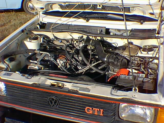 This spot is dedicated to my 1984 Volkswagen Rabbit GTI. I bought this car in August, 1999. It was just way too clean to pass up, *and* the A/C worked good, which was pretty much a requirement for a car in Houston, Texas. The sweetest thing about this GTI is that it is BONE STOCK. It doesn't look like anyone has done any "way rad mods" to her. The engine compartment looks like it should, and is super clean. This is one GTI that has had a nice life and has been treated right.