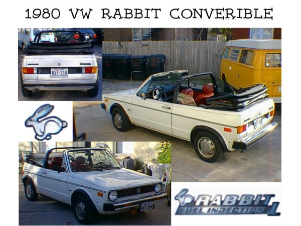 I had been thinking over the last few weeks of 1999 about getting a Rabbit convertible, and perhaps trading someone the GTI for it. Well, I didn't find anyone too interested in a trade, but I did find this 1980 Rabbit convertible about 3 miles from my house! I had noticed it in a parking lot with for sale signs in it, but the parking lot had chain link fence all around. After several attempts to get a look at it in the evening, my wife and I finally were able to get in the chain link fence on Sunday afternoon to get a look. It was impressive! The for sale sign said thinks like "Classic", "85k miles", and other expensive sounding adjectives. I called the number and had to leave a message. After almost four days, I didn't hear back from anyone about the Rabbit, and figured I wouldn't hear anymore about this Rabbit. Then I got the phone call! I heard all about the car, all the maintenance that had been performed, learned it had been garage-kept, etc. I knew it was going to be out of my price range when I asked him what he was asking for it. (I had figured between $2500 and $3000.) He said that they had been asking $1800 for it (it had been sitting in that parking lot for 3 weeks) and had 2 people look at it but pass, so he was asking $1700, and might even be willing to go lower than that. I got this big goofy grin on my face and gave a thumbs-up to my wife, who had been eavesdropping on my side of the conversation. It was in the same range as what I could quickly sell my GTI for! I asked the seller if he would be at all interested in a trade, but no, this was his wife's car, and she had recently purchased a new Camry. We made plans to see it on 01-01-2000.